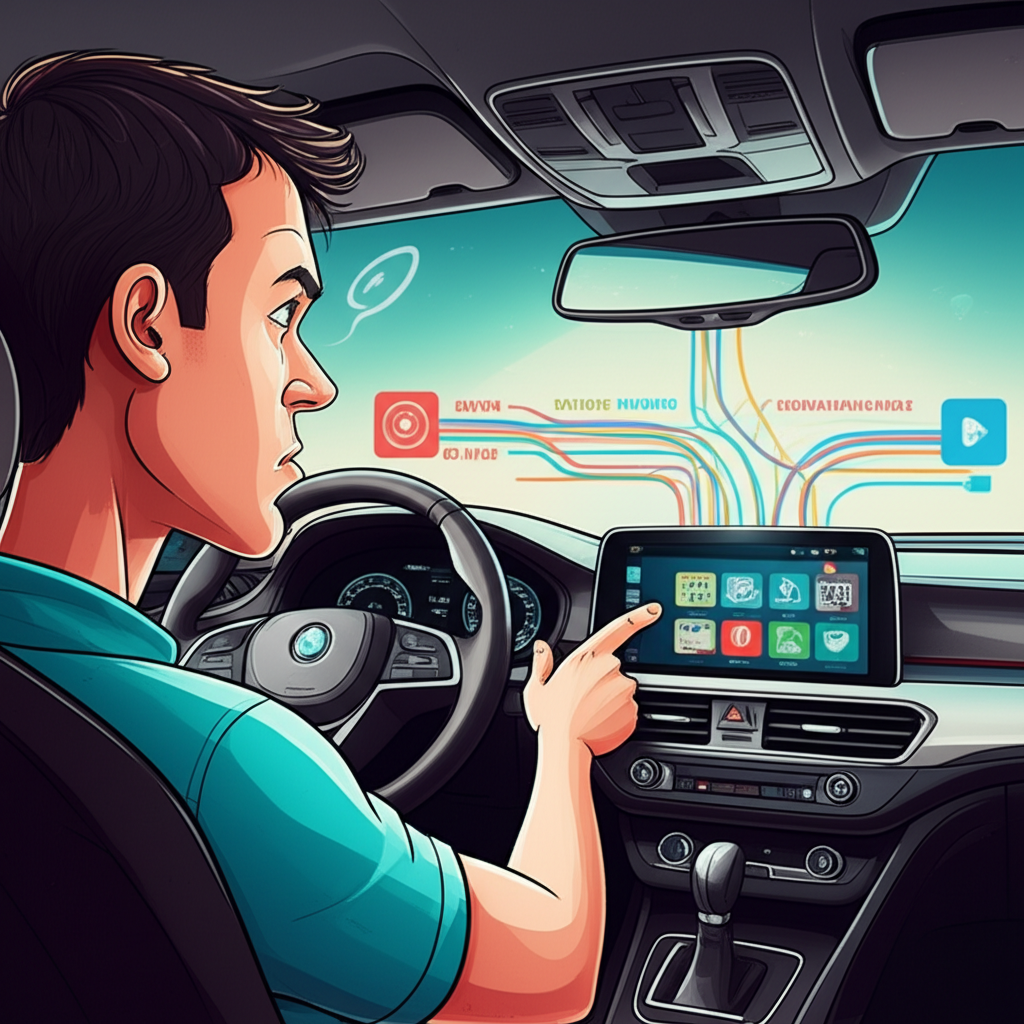 Ini adalah risiko yang paling jelas dan langsung. Layar sentuh yang besar dan menarik, notifikasi yang terus-menerus, serta berbagai aplikasi yang tersedia dapat dengan mudah mengalihkan perhatian pengemudi dari jalan. Distraksi dapat dibagi menjadi tiga jenis:- Visual: Mata teralihkan dari jalan untuk melihat layar.